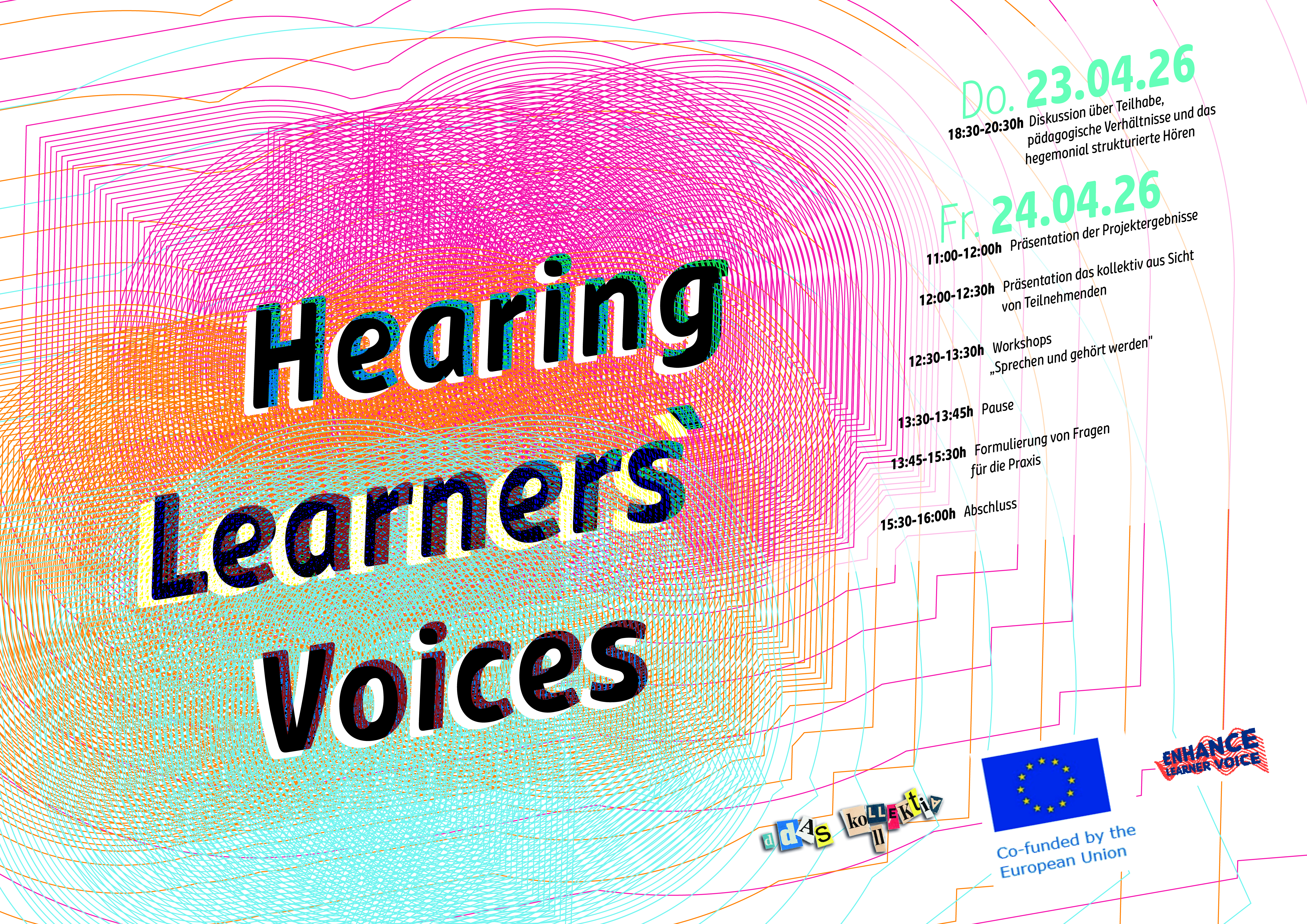 Im Projekt ENHANCE - Enhancing Adult learners voices haben wir uns, gemeinsam mit unseren Partner*innen, mit dem Konzept der „Stimme der Lernenden“ auseinandergesetzt, mit dem geteilten Verständnis, dass es hier um ein metaphorischen Ausdruck für die Teilhabe und Handlungsfähigkeit der Lernenden in pädagogischen Prozessen handelt. Dabei wurde das Prozesshafte und Transformative in den Vordergrund gerückt und danach gefragt, welche Bedingungen erforderlich sind, damit Lernende ihre Bildungsprozesse und gesellschaftliche Verhältnisse mitbestimmen und mitgestalten (vgl. Backgrund Paper, S. 7: http://enhancelearnervoice.com/wp-content/uploads/2025/09/ENHANCE_D2.1_Background-Paper.pdf ).