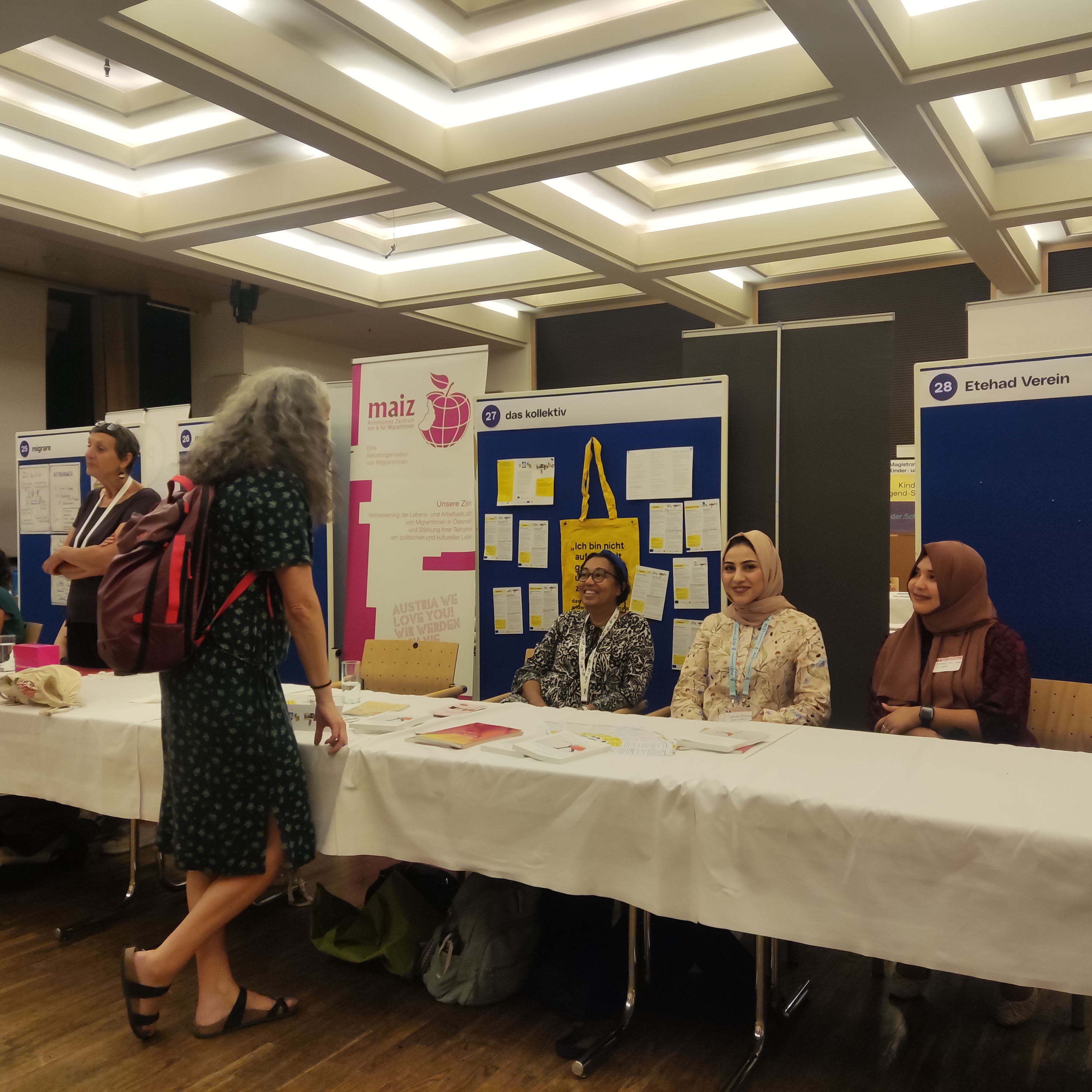 Am Mittwoch 25. Juni 2025 fand im Linzer Neues Rathaus zum zweiten Mal die FRAUEN.Info.Messe statt. Verein das kollektiv wurde von Multiplikator*innen des Projekts "moving on: Migrant*innen auf dem Weg zu höherer Bildung" vertreten. Sie wurden von der Geschäftsführerin und Koordinatorin des Projektes Gergana Mineva, sowie der Mitarbeiterin Francine Sturm begleitet. Die Multiplikator*innen und Mitarbeiter*innen stellten die verschiedenen Bildungsmöglichkeiten der Organisation vor. Beim Infotisch von das kollektiv gab es auch die Möglichkeit, mehr über verschiedene Publikationen und die Bildungsarbeit vom Verein zu erfahren.
