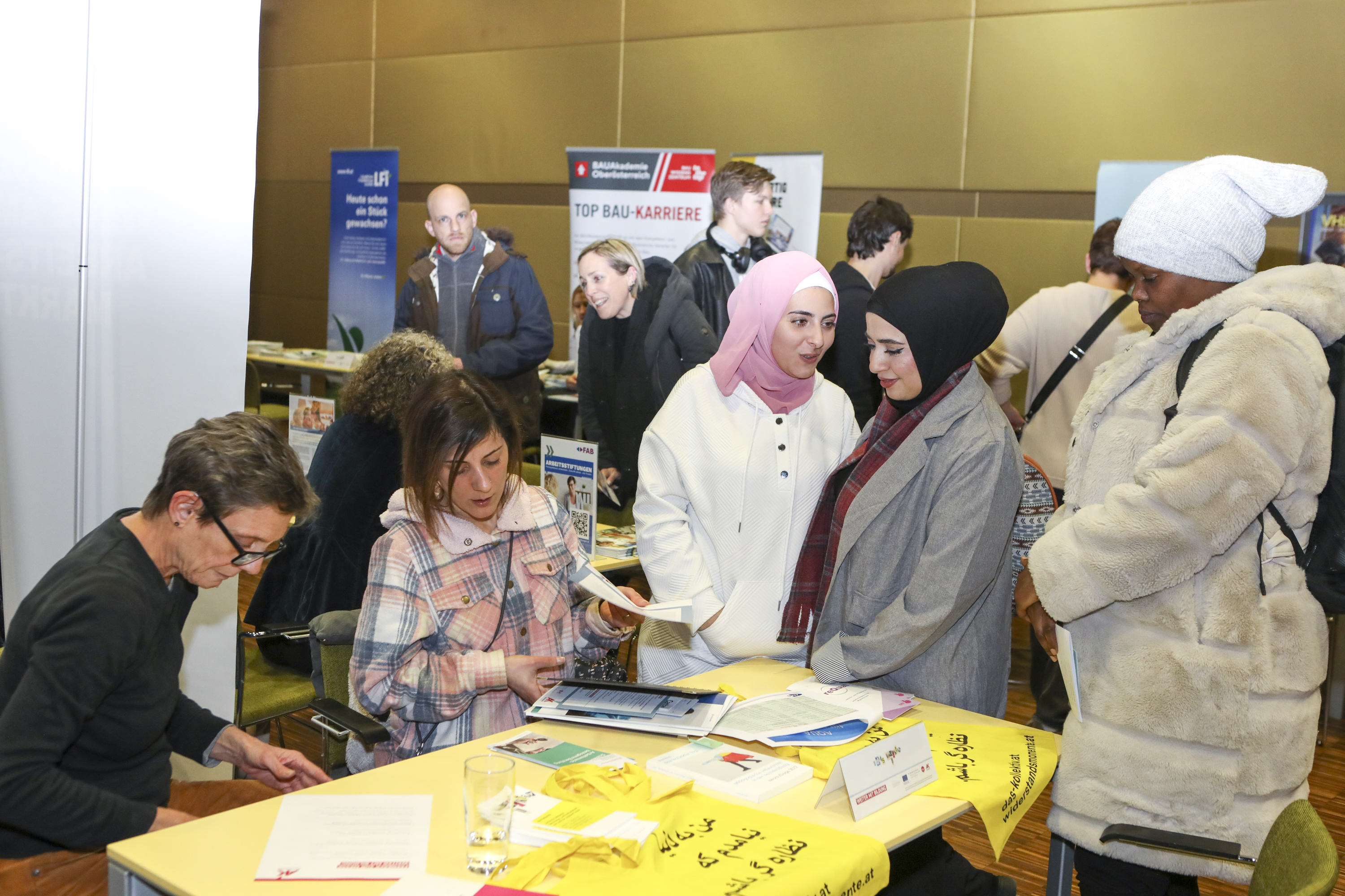Die Messe wurde von gegenwärtigen Teilnehmer*innen des Vorbereitungslehrgängs zum Nachholen des externen Pflichtschulabschlusses von das kollektiv besucht. Begleitet wurden sie von Evrin Barkal, einer Beraterin vom Verein.